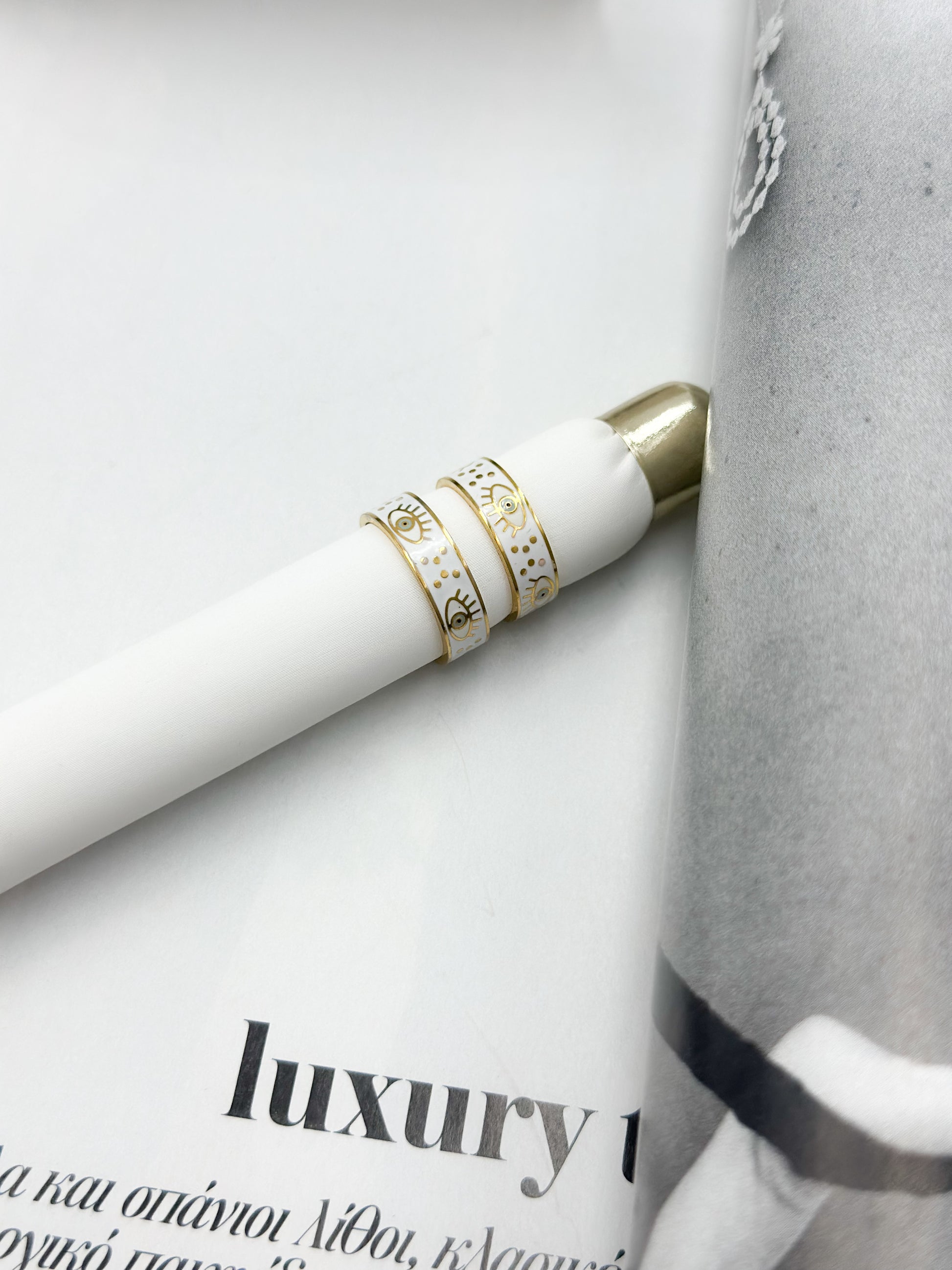 Δαχτυλίδι “eyes” με λευκό και τυρκουαζ σμάλτο