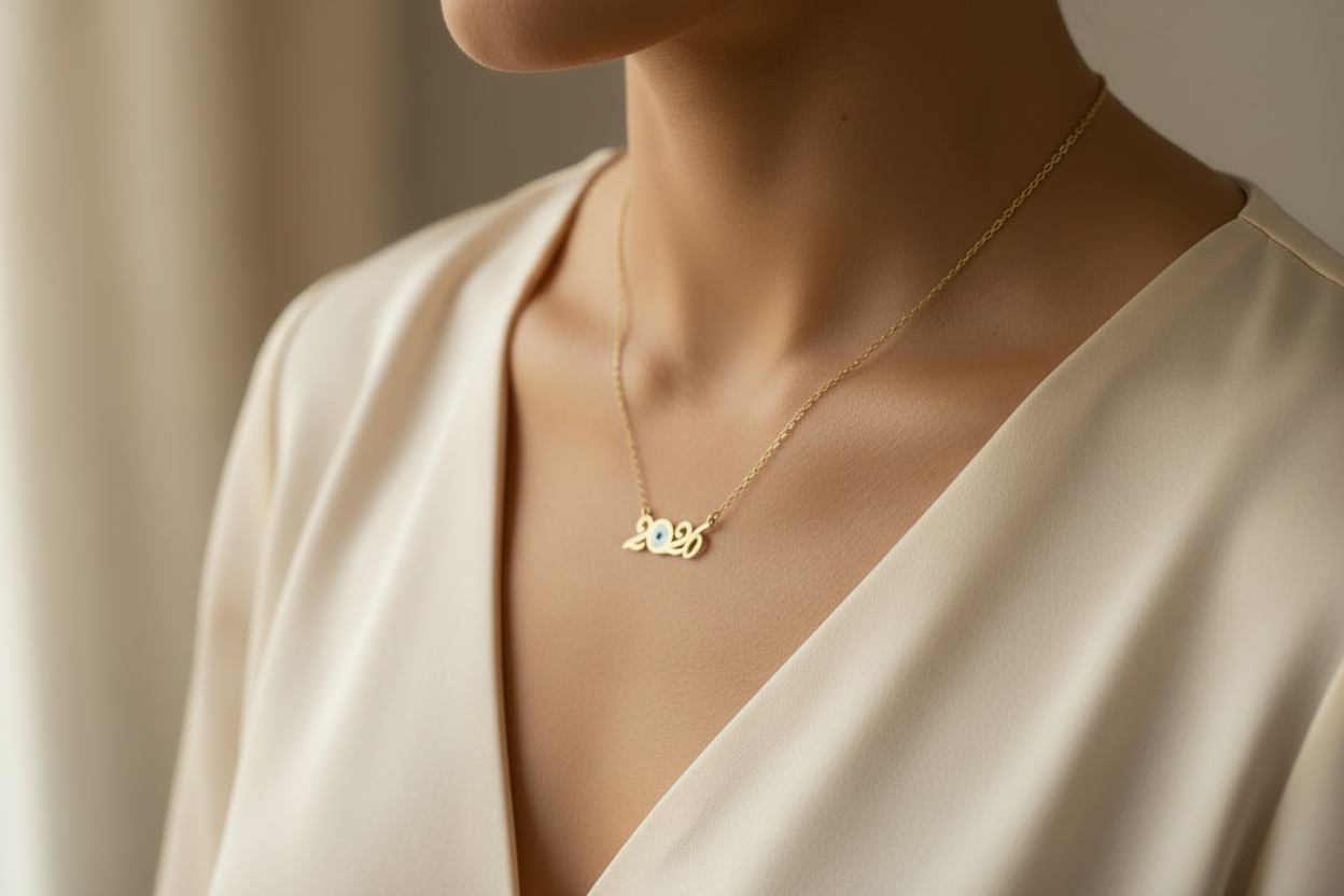 - Γούρι 2026 κολιέ με στοιχείο από ατσάλι και σμάλτο
