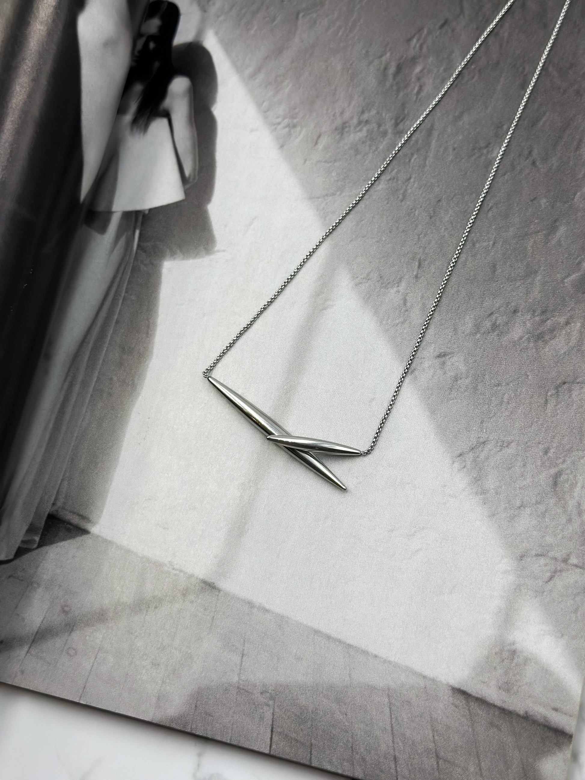 Διαθέτει δύο επιμήκεις μεταλλικές ράβδους που τέμνονται δημιουργώντας ένα εντυπωσιακό γεωμετρικό σχήμα — ένα statement κόσμημα που αναδεικνύει κάθε στυλ, από καθημερινό έως πιο βραδινό.